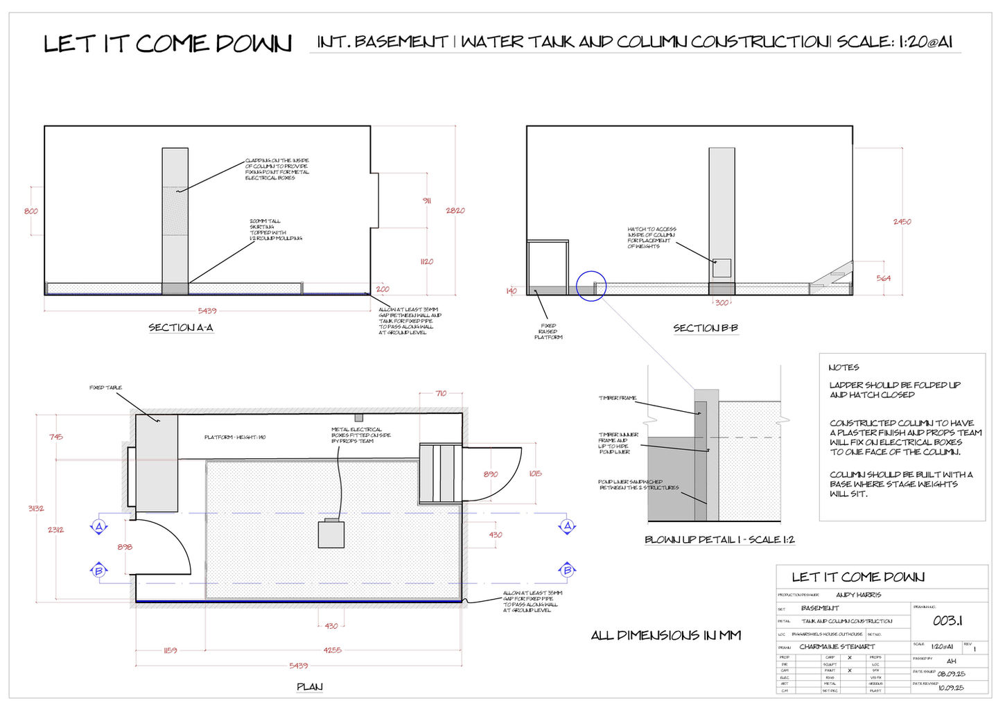 A selection of floor plans, orthographic layouts and elevations for various projects including TV drama, scale models,